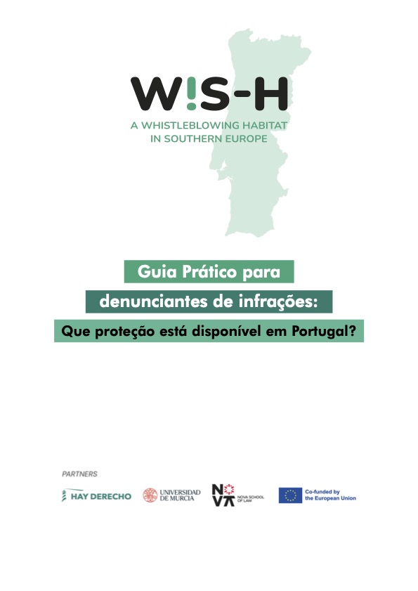 O projeto WiS-H oferece aos cidadãos materiais de divulgação para download sobre proteção de denunciantes. Consulte aqui o estudo analítico “The protection of whistleblowers under EU Directive 2019/1937: the cases of Spain and Portugal“.